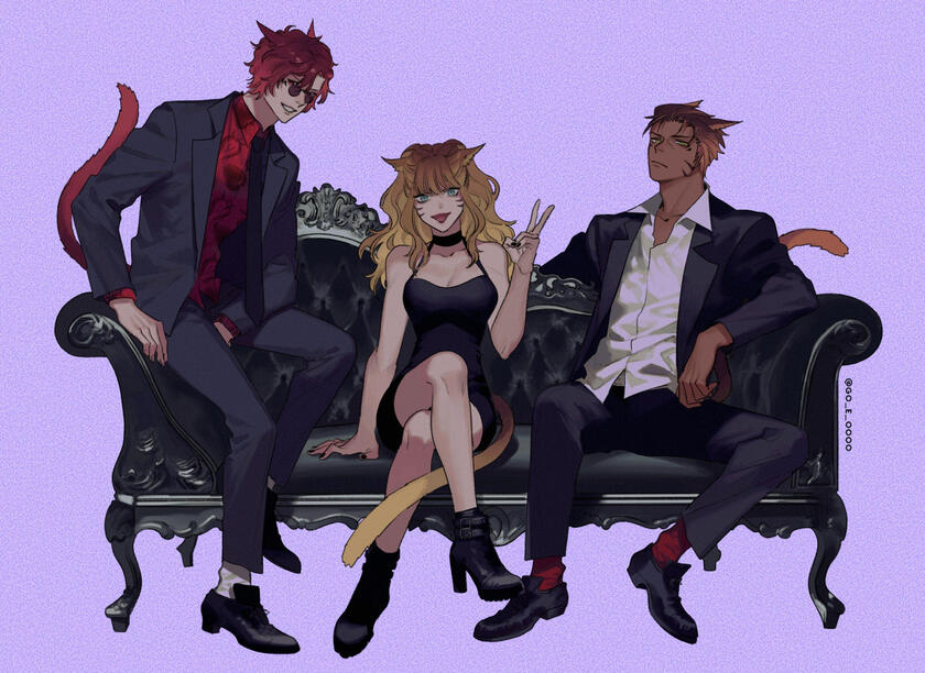 This rumoured sky-rat can sometimes be found in the nearest bar, drinking or minding his own unless something or someone catches his eye. Rare is he to walk up first, unless he wants something from you. This, coupled with his antagonistic personality leave plenty to be desired from the amoral miqo'te.With a preference for things or people that catch his eye, Coke's attention is very quick to wane over time if he's not kept engaged. He can be found rapidly drifting off from slow conversations, looking everywhere else and outright walking away should something else peak him. There are few exceptions to this rule, and one can almost certainly find him glued to a rolanberry scented courtesan's hip, or looming over a tiny pink terror if either happen to be in his sightlines.A large miqo'te, not quite in height but certainly in the breadth of his shoulders, the man has undoubtedly had his days lumbering around heavy materials. Under his collarbone, stretching near across the whole of his torso is a scar with stitching lining it, a torn up right ear and nautical themed half-sleeve.When he yawns, or opens his mouth too wide, it's not unheard of to see massive canines behind his lips. He tries often to avoid from flashing them, however.Coke speaks with something of an arrogant tone, often lapsing back into snark or a sneer when things are going his way.When they're not? He has fists for that.